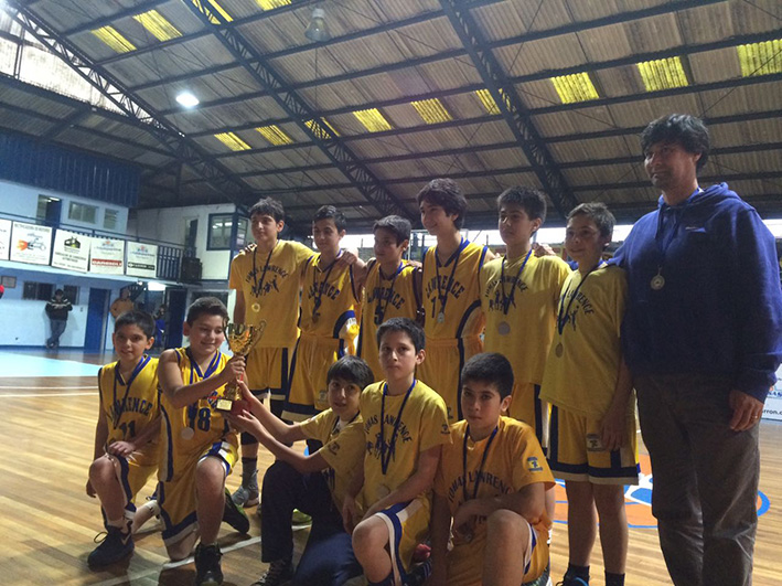 En el segundo partido jugado desde las 16:00 horas en el Gimnasio de Las Brisas en la comuna de La Cisterna, la categoría Sub 13 varones que dirige el profesor Carlos Moreno, les correspondió enfrentar a su similar de la Universidad de Chile. Un gran partido que solamente se resolvió en el cuarto decisivo donde los estudiantes vencieron con un marcador final de 43 puntos a 33. Tomás Lawrence muy apoyado por los padres y amigos de los integrantes del equipo levantaron la copa del segundo lugar y es claramente un orgullo para ellos por la categoría de los equipos que participaron.