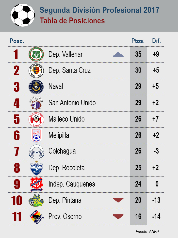 Recoleta y Naval, en San Bernardo igualaron sin goles. Deportes La Pintana perdió frente a Provincial Osorno en el Estadio Municipal de La Pintana con gol de Pablo Domínguez para el equipo visitante.