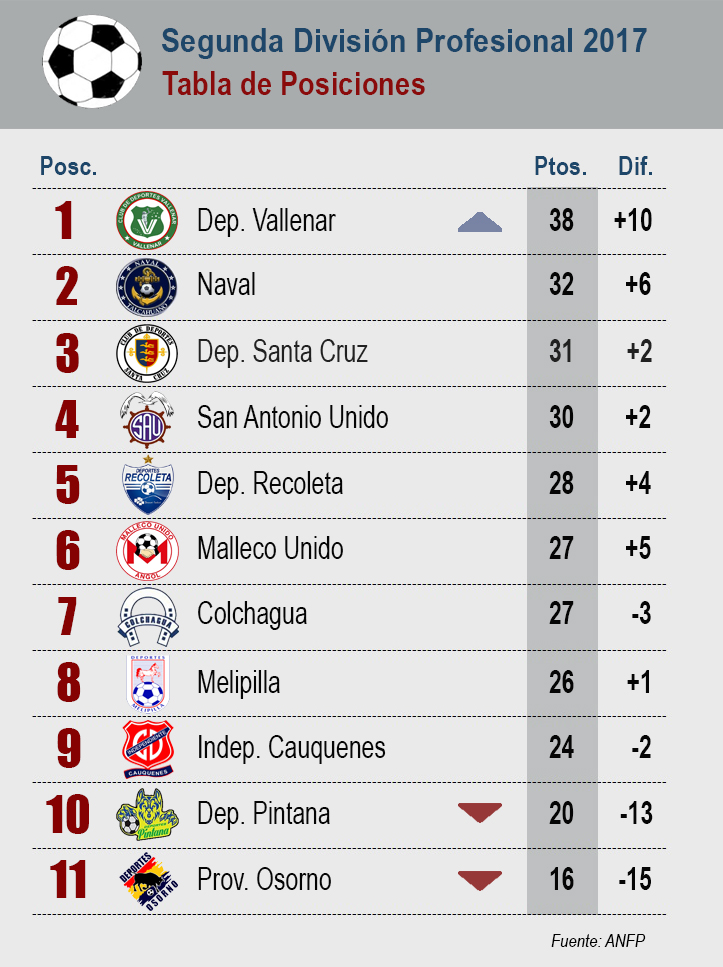 El pasado fin de semana se jugó la última fecha del Torneo del presente año de la Segunda División Profesional y en general, se mantuvieron las posiciones en todos los lugares de una competencia que todavía a través de los organismos correspondientes de la ANFP podría tener algunos cambios, de menor importancia, de todas maneras.