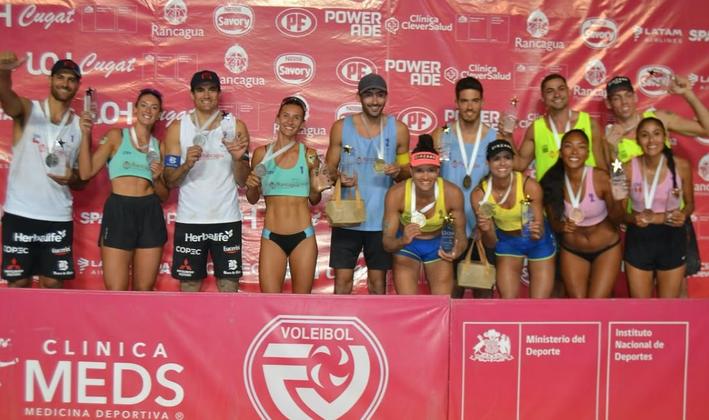 Con un gran marco de público que llegó a la Medialuna Monumental de Rancagua finalizó el día domingo la tercera fecha del circuito sudamericano de Voleibol Playa, en el cual la gran atracción del fin de semana fue la participación de los primos Marco y Esteban Grimalt.