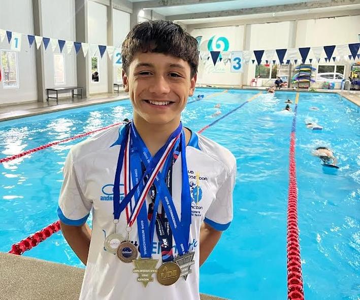 En poco más de tres años, ha logrado un destacado ascenso en los distintos niveles de la natación en los que ha participado, nos referimos a José Pablo Sánchez Lira (de 13 años), quien es hijo de padre sanfernandino y madre sanvicentana y pertenece a los registros del Club de Natación Poseidones, y en el cual apunta a llegar más lejos.