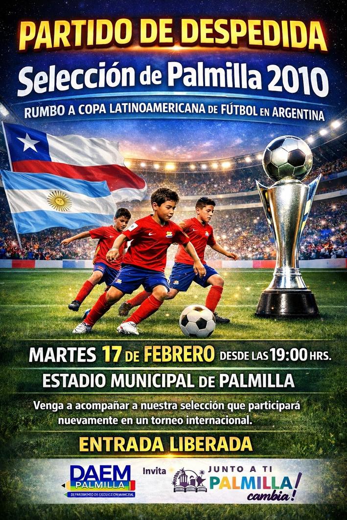 La selección de fútbol de Palmilla, en la categoría 2010 participará durante este mes en la séptima edición de la Copa Latinoamericana de Ciudades y Municipios Turísticos Emergentes, certamen que se llevará a cabo en la ciudad de Ituzaingó, Provincia de Corrientes, Argentina.