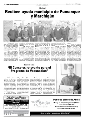 abril será un día impor- loza Acevedo, destacó que gramas y campañas de va- que las vacunaciones son
