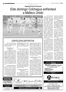 CARTELERA DEPORTIVA gará desde las 17:30 horas nando Colchagua y Malle-