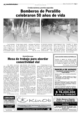 nueva; el Diputado de la te, Claudio Cumsille; Con- principal de la comuna ra Compañía de Peralillo. estímulos para algunos vi- dieron a desfilar frente a