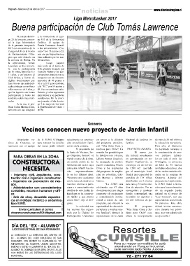 - Ingeniero civil, arquitecto, cons- te en los últimos años. ción de cobertura, Cris- Tendrá una capacidad de cadas en la comuna de