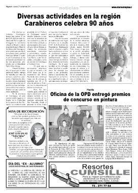 misa que se oficiará por el En dependencias del gim- El programa OPD de Placilla, de Lenguaje María Montesori; Segun-