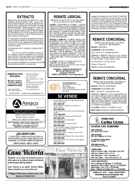 con la asistencia de los per- zón de satisfacción”, señaló sufrió graves lesiones de- REMATE JUDICIAL Juzgado Civil de Santa Cruz, Rol V-56-2017, “KOSHUBA”.
