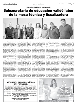 Concejo Municipal y el Ministe- a la educación en San Fernando, los dirigentes de la Educación, muy provechosa en la cual se di- “Quedó establecido y claro de que