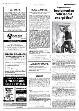 muna elegida para despedir el mes de Bárbara, profesora de baile, la opción de ir a un nutricionista y es- do Letras San Fernando, se ha ordenado rematar 28 de abril cios, departamentos y unidades del hospital.