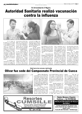 de O´Higgins, inmunizan- “Hemos dispues- cional de inmunización do a la Influenza y muchos responsabilidad que hacia salud pública”.
