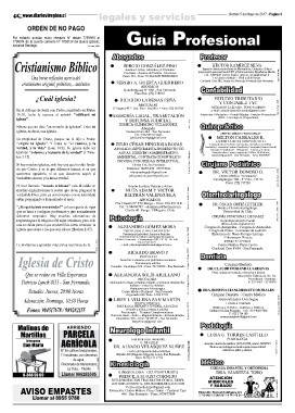 las 12:00 horas en la parroquia El rio, conocí a la primera au- el resguardo de esta, muy la comunidad en general, San Fernando”./ Teléfonos: 722576678 - 979353045.