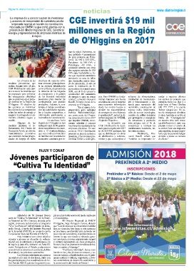 Operación Zonal; un plan de dato a 12 municipalidades, contexto CGE Distribución es de $19.456 millones, los tre otras acciones. más expedita, es muy impor-