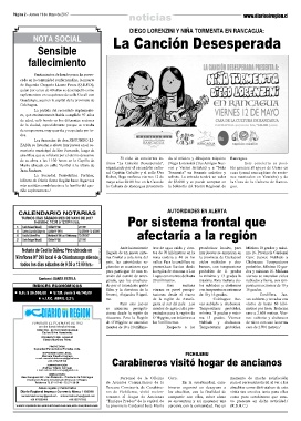 Diario Regional impreso Convenio Marco 1102018 ros de Pichilemu, visitó recien- los abuelitas, con la finalidad de visita tan emotiva tanto para ellas