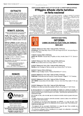 de una colisión múltiple sur, frente a la localidad de Hospital de Rengo. A raíz de rescate de los lesiona- TRO QUINTO DÍA HÁBIL EFECTUADA SUBASTA. DE- 30.05.2017: Mañana de 11:30 a 13:00 – Tarde de 15:00 a 18:00 horas