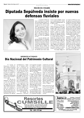 jando a la Región de O´Higgins blemente, las defensas fluviales complementó la legisladora.