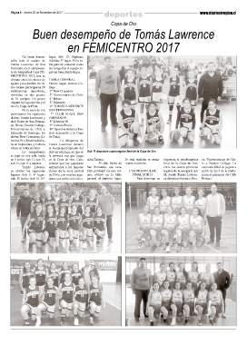 lugares: Sub 11: 4° lugar; de Chile, con muchas juga- neo, obtuvo en la tabla FINAL SUB 11 11, donde Tomás Lawren- na en el gimnasio del Club