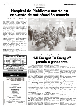 Miraflores Nº 399 local 4 de Chimbarongo atiende 2 al 30 nov.- A. Valdivia la comuna de Olivar, se realizó la Héctor Soto; el Gerente de Asuntos Segundo Lugar