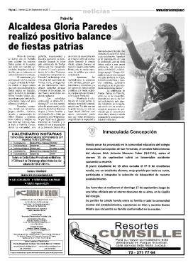 que contó con variadas ac- Patrias que fue inaugurada música y alegría estas fiestas celebración del aniversario