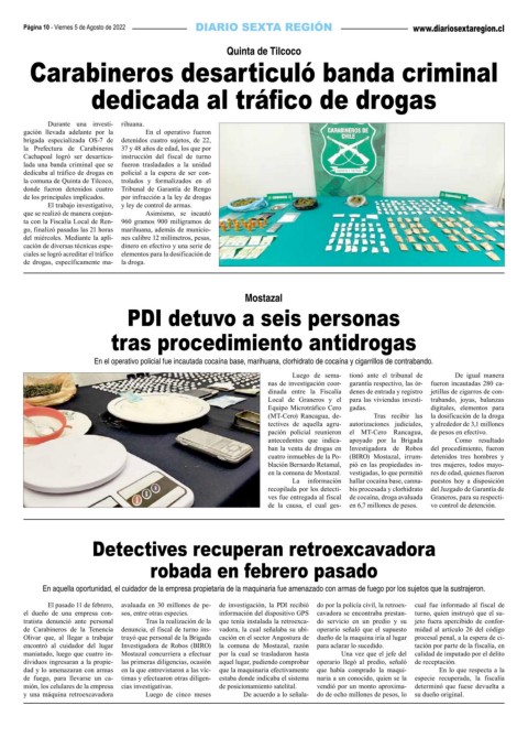 Cachapoal logró ser desarticu- instrucción del fiscal de turno