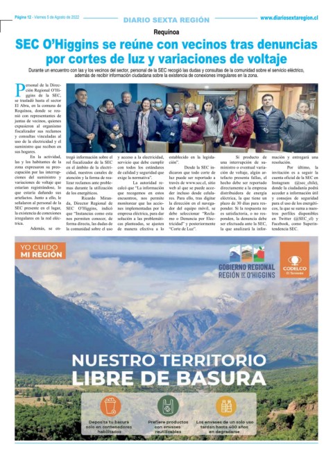 Página 12 - Viernes 5 de Agosto de 2022 www.diariosextaregion.cl