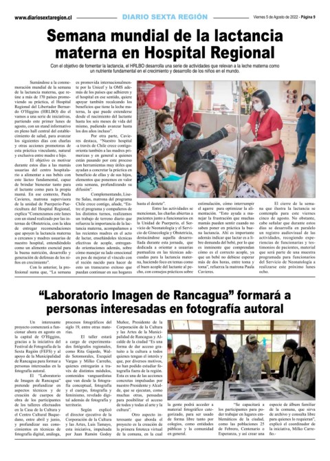ricultura del Hospital Regional, tre el programa y compañeros de Entre las actividades se el agarre para optimizar la ali- na que ilustra la lactancia se