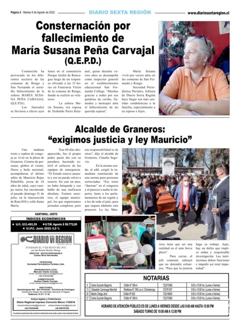 señora MARÍA SUSA- donde se realizó su vela- gracias a todos por sus de Diario Sexta Región