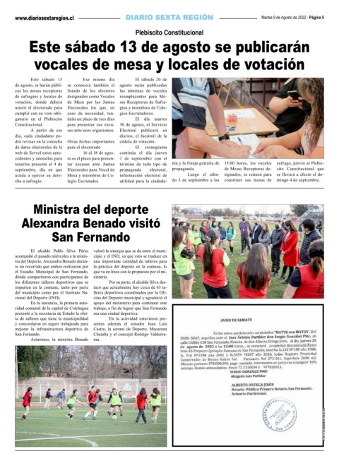 ridad comunal de la capital de Colchagua trabajo, a fin de lograr que San Fernando