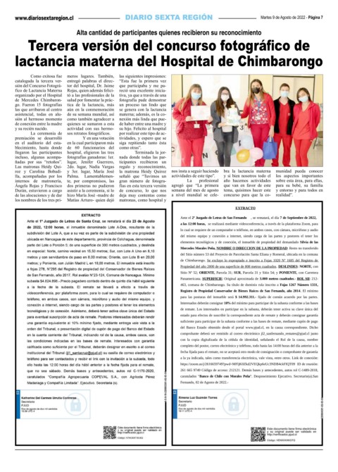 y su recién nacido. actividad con sus hermo- su hijo. Felicito al hospital , se rematará, el día 7 de Septiembre de 2022,