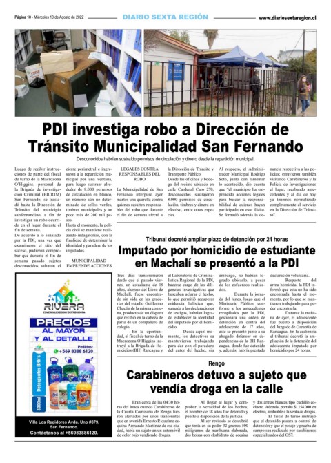 O’Higgins, personal de para luego sustraer alre- ga del recinto ubicado en lo acontecido, dio cuenta Policía de Investigaciones