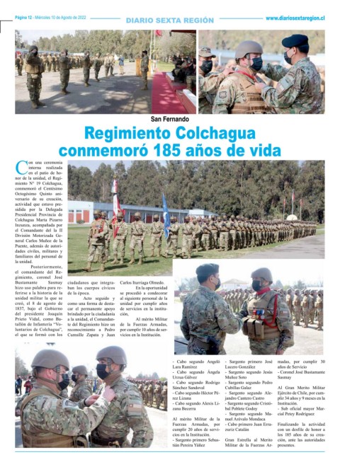 Página 12 - Miércoles 10 de Agosto de 2022 www.diariosextaregion.cl