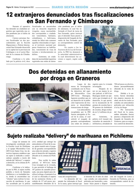 Colchagua y en el sector Hue- turismo e involucramiento en jería, la PDI los denunció a