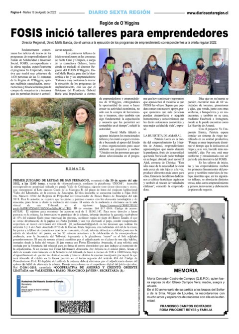 el programa Yo Emprendo, inicia- gional del FOSIS O’Higgins, Da-