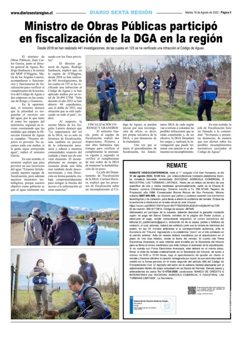 ministerio, seguirán en te- seremi María de los Án- FISCALIZACIÓN EN digo de Aguas, se pueden naros DGA de cada región En este sentido, la