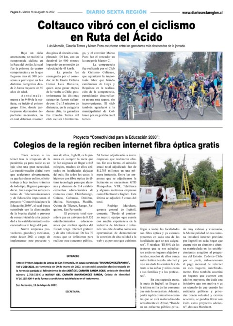 proyecto “Conectividad para la Malloa, Nancagua, Placilla, total.