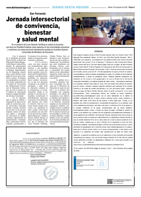 cionados, pertenecientes a Liceo Neandro Schilling, vincial.