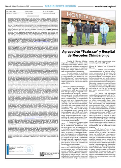 el centro asistencial y la agrupación “Tea- nuestra agrupación. Nos entregó su apoyo