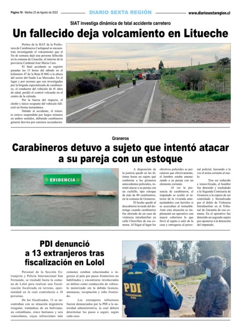 na de Lolol para realizar una fiscal- en delitos como conducción de vehícu-