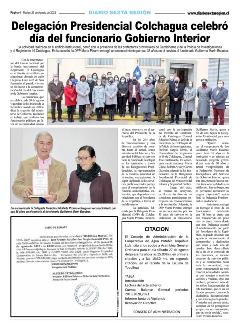 guridad Pública, el servicio to 19 de Colchagua, Coronel institución y es además un