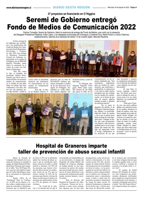 colaborativo con ellos. Por beneficiados. región de O’Higgins, dis- ggins, Fabio López Agui- nicación, que dinamizan y dios locales”.
