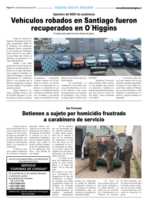de la SEBV Rancagua, “A raíz lios, vía pública y una parcela de Pichidegua y San Vicente una estafa y verse involucrado hículos a quienes acrediten su