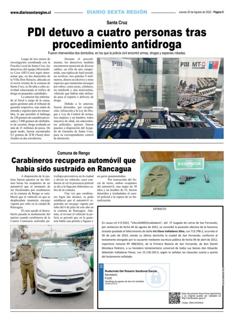 El caso quedó al descu- la comuna de Rancagua. Ade- EXTRACTO EXTRACTO
