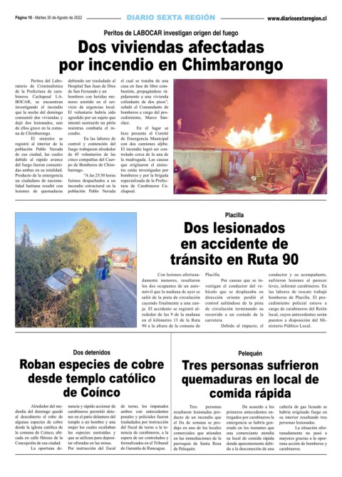 bineros Cachapoal LA- bombero con heridas me- pidamente a una vivienda