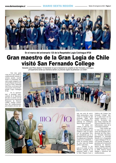 En el marco del aniversario 125 de la Respetable Logia Colchagua Nº28