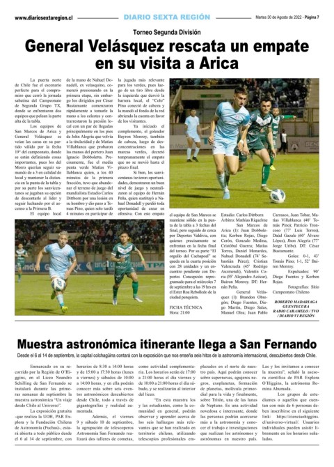 El equipo local 4 minutos en participar de ofensiva. Con este empate el equipo de San Marcos se Estadio: Carlos Dittborn Carrasco, Juan Tobar, Ma-