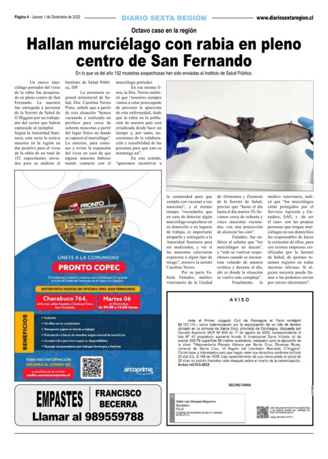 ciélago portador del virus ca, ISP. En esa misma lí-