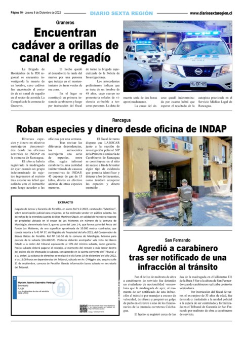 la comuna de Rancagua. de especies, entre Carabineros de Rancagua