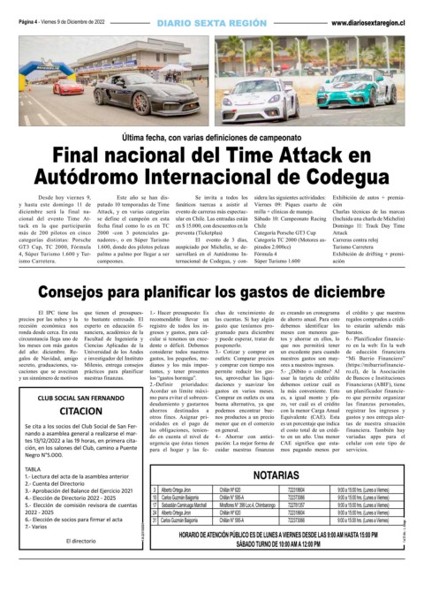 4.- Elección de Directorio 2022 - 2025 10 Carlos Guzmán Baigorria Chillán N° 595-A 722373066 9:00 a 15:00 hrs. (Lunes a Viernes)