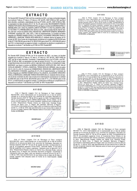 88 y 205-128, Comuna de SANTA CRUZ, REGION DEL LIBERTADOR GENERAL BERNARDO