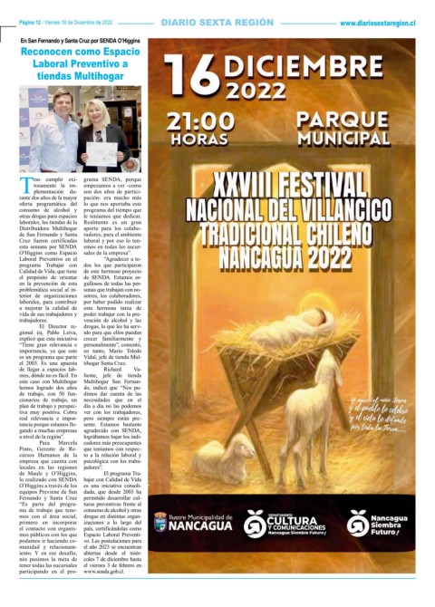 Página 12 - Viernes 16 de Diciembre de 2022 www.diariosextaregion.cl